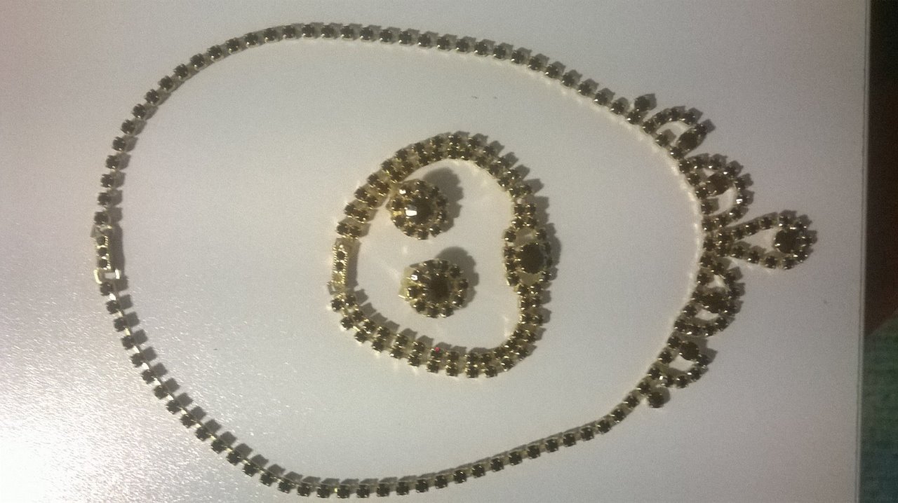 No a posledná je v ponuke sada šperkov - náhrdelník, náušnice, náramok z červeného českého granátu a imitácie zlata. Cena za celú sadu je dohodou 7-8 eur.